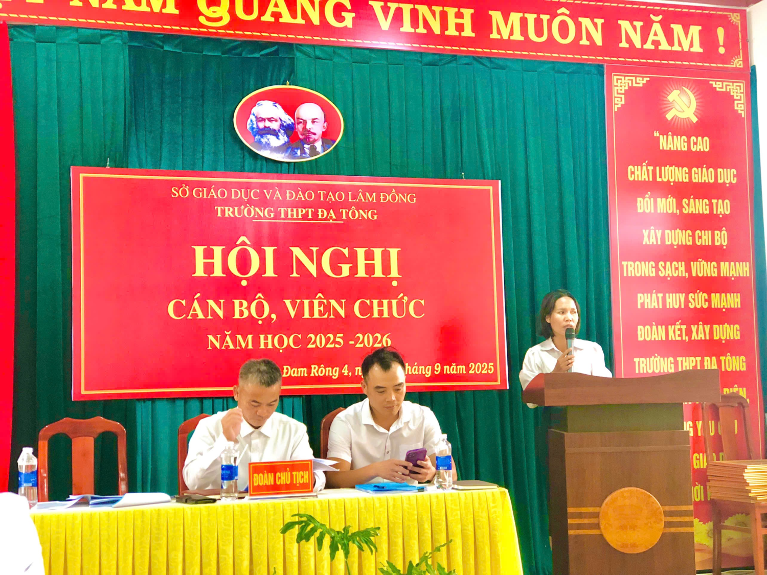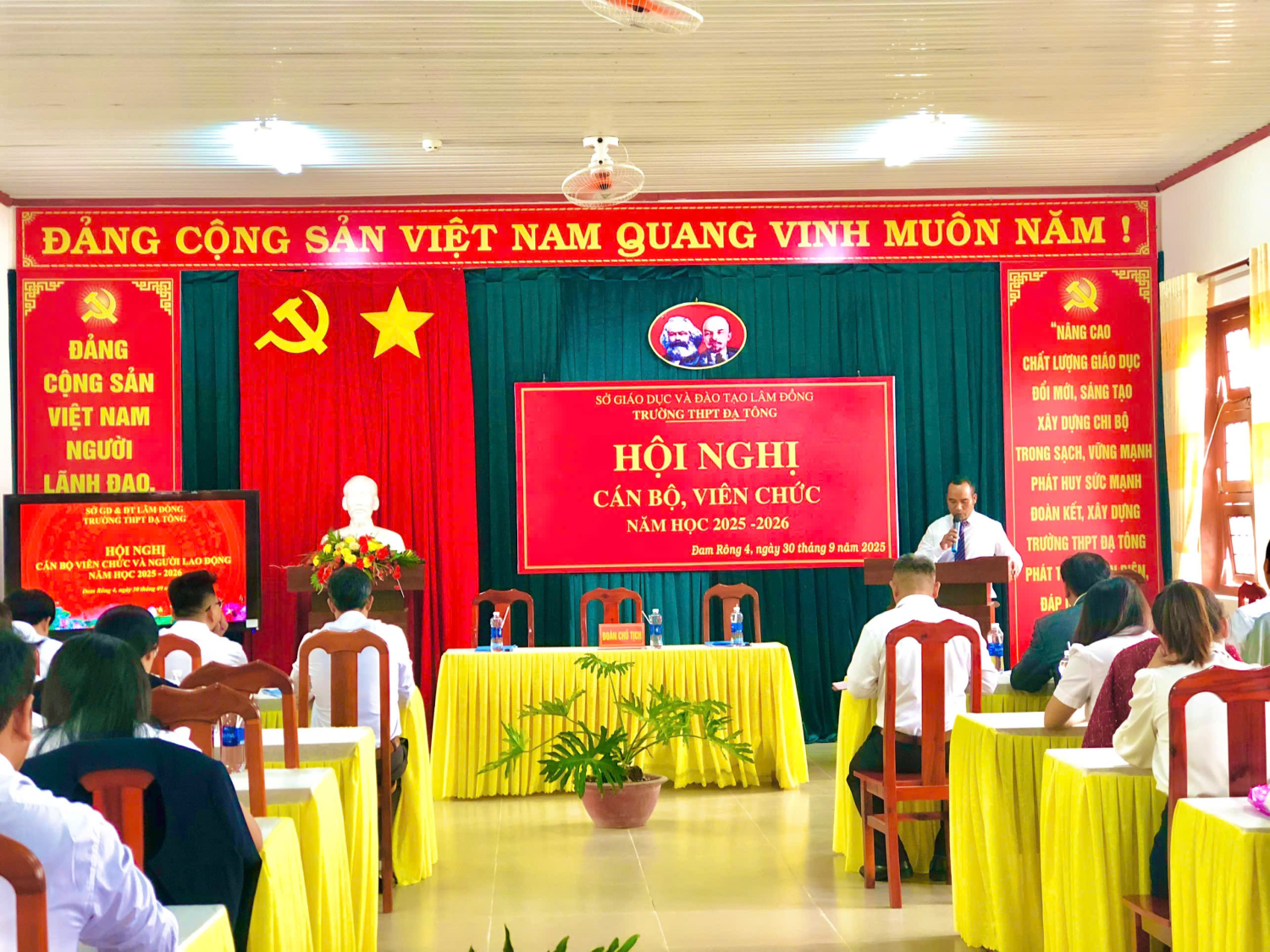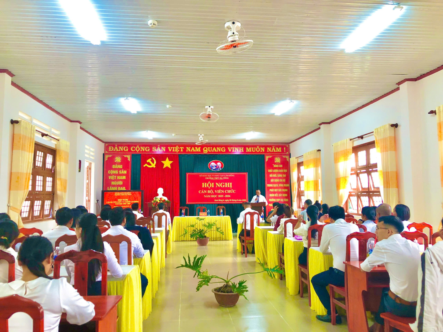 Theo hướng dẫn số 794/SGDĐT-VP ngày 11/9/2025 của Sở GDĐT tỉnh Lâm Đồng V/v Thực hiện dân chủ ở cơ sở và tổ chức Hội nghị CBCCVC và Hội nghị NLĐ từ năm học 2025-2026; Chiều ngày 30 tháng 09 năm 2025, Trường THPT Đạ Tông long trọng tổ chức Hội nghị CBCCVC năm học 2025 - 2026.